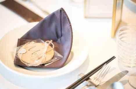 お二人の美味しい思い出を贅沢に込めたエピソードレシピ付きのオーダーメイドのコース料理は、大好評のおもてなしに。アメリカ留学の思い出のタコス、新婦お母様の逸品のイマージュ、お二人が旅行先で必ず食べるポテトを添えたお肉料理とお二人のSTORYを一緒に楽しんでいるような気持ちになります。「結び」は両家を結んだ名古屋飯をご堪能いただきました。