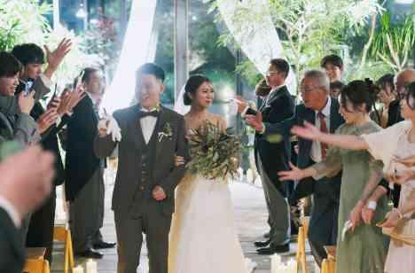 ゲストの皆様にリラックスをして楽しい時を過ごしていただきたいと、自由な空気感を何よりも大切にされた結婚式。ゲスト目線で楽しんでいただける演出の工夫はもちろん、お二人の共通の趣味で彩られたウェルカムスペースやエピソード付きコース料理などを通してお二人を感じていただくことで、皆様の緊張を笑顔へと導きます。幻想的なナイトウェディングにも注目のお二人の結婚式をご紹介します。