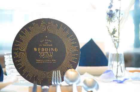 どんな時もゲストに楽しんでいただきたい!パーティの打ち合わせの中で一番大切にされていたところはこの想いでした。会場に入った時には感動を、パーティの時には笑顔あふれる空間を。音楽のタイミングなど1秒単位で考えるお二人。ゲストへ深い想いを感じました。会場コーデはネイビー×ゴールド。カッコよくおしゃれな雰囲気の中にお二人の好きなキャラクターもプラスしました。
