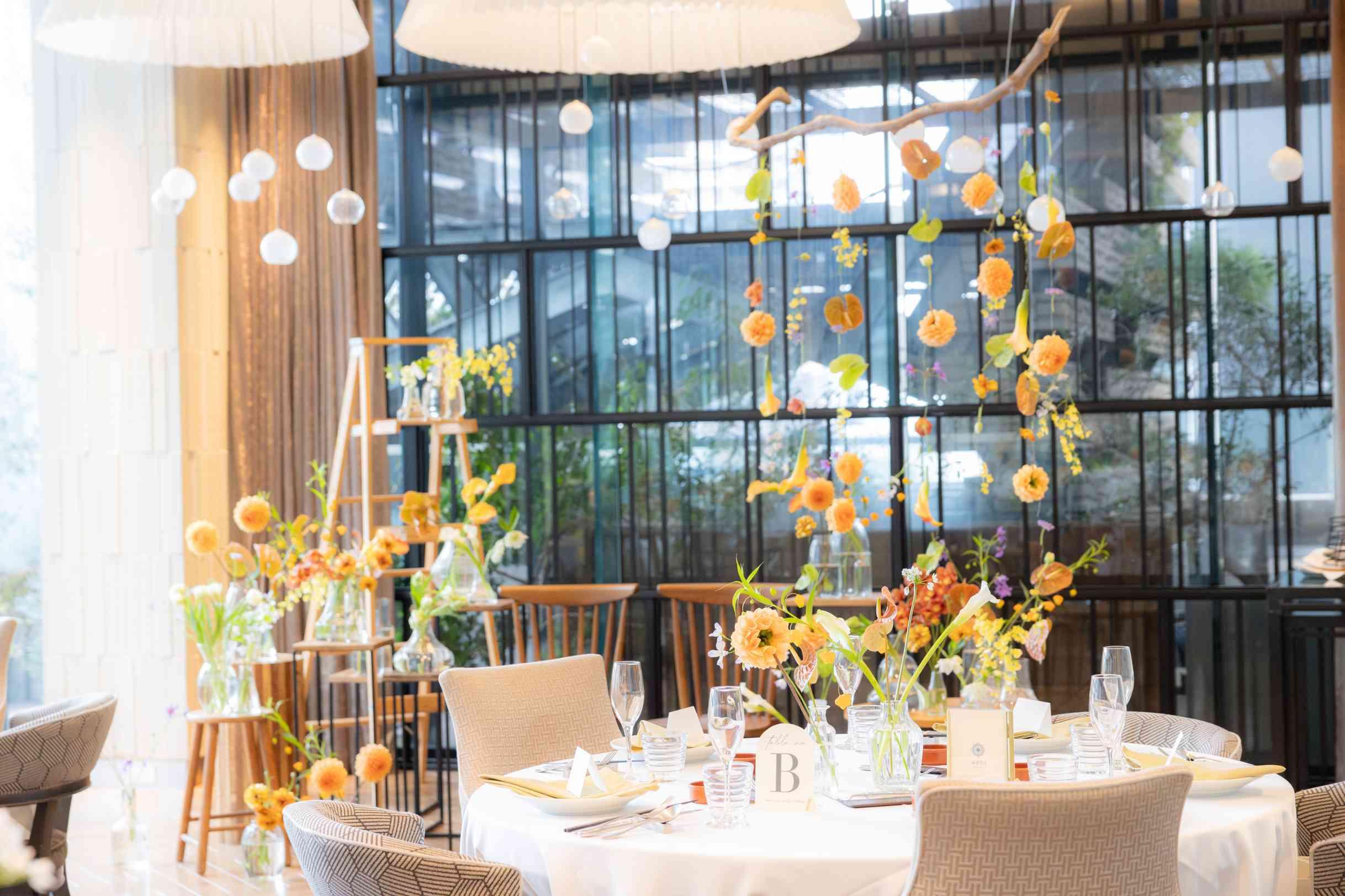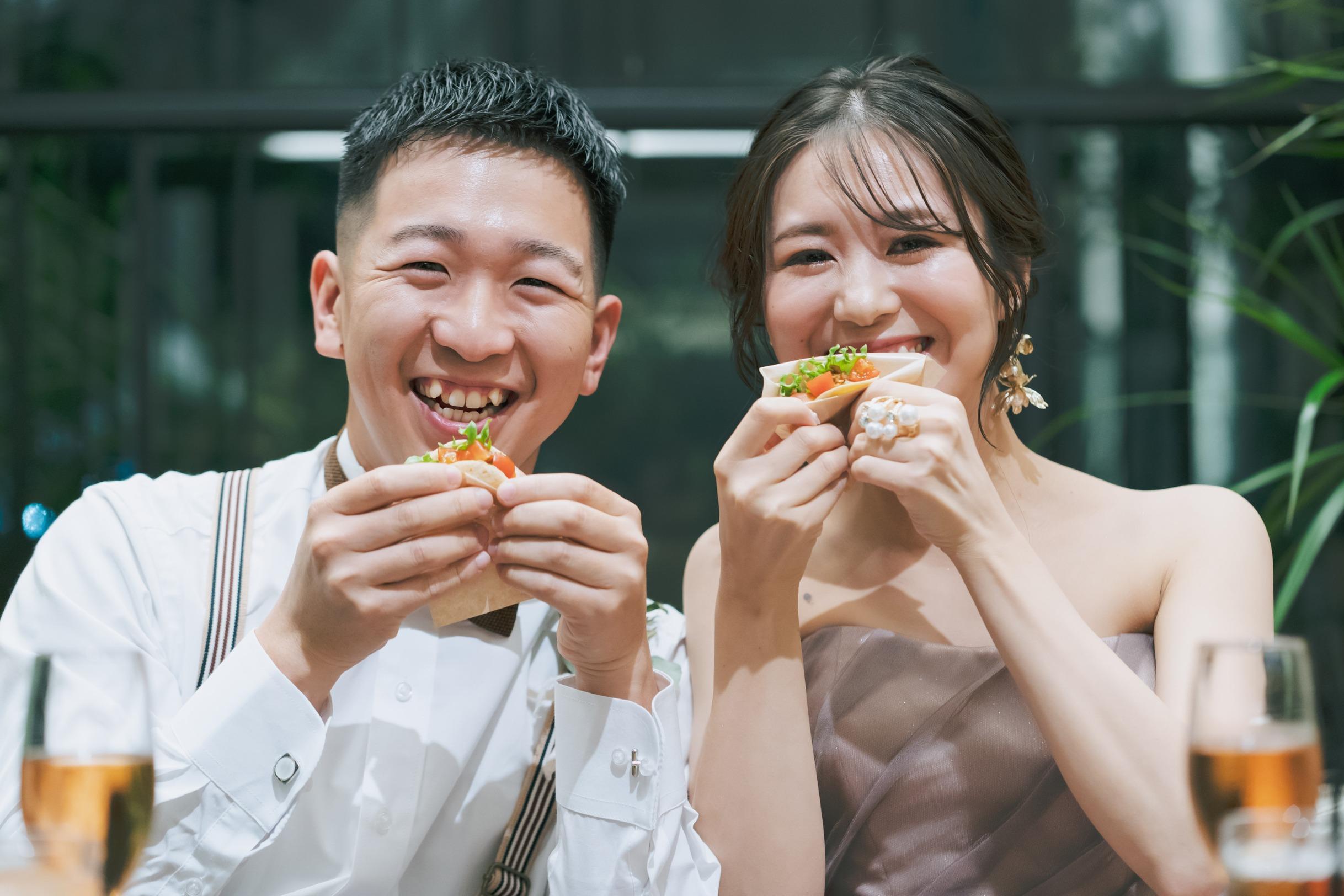 香りと料理演出で魅了するオープンキッチンが印象的。地中海を思わせるアーチモニュメントをくぐると、そこにはゲストの笑顔と美食でもてなす自然に囲まれたレストラン空間。アクセスの良さと美食が少人数婚にも人気