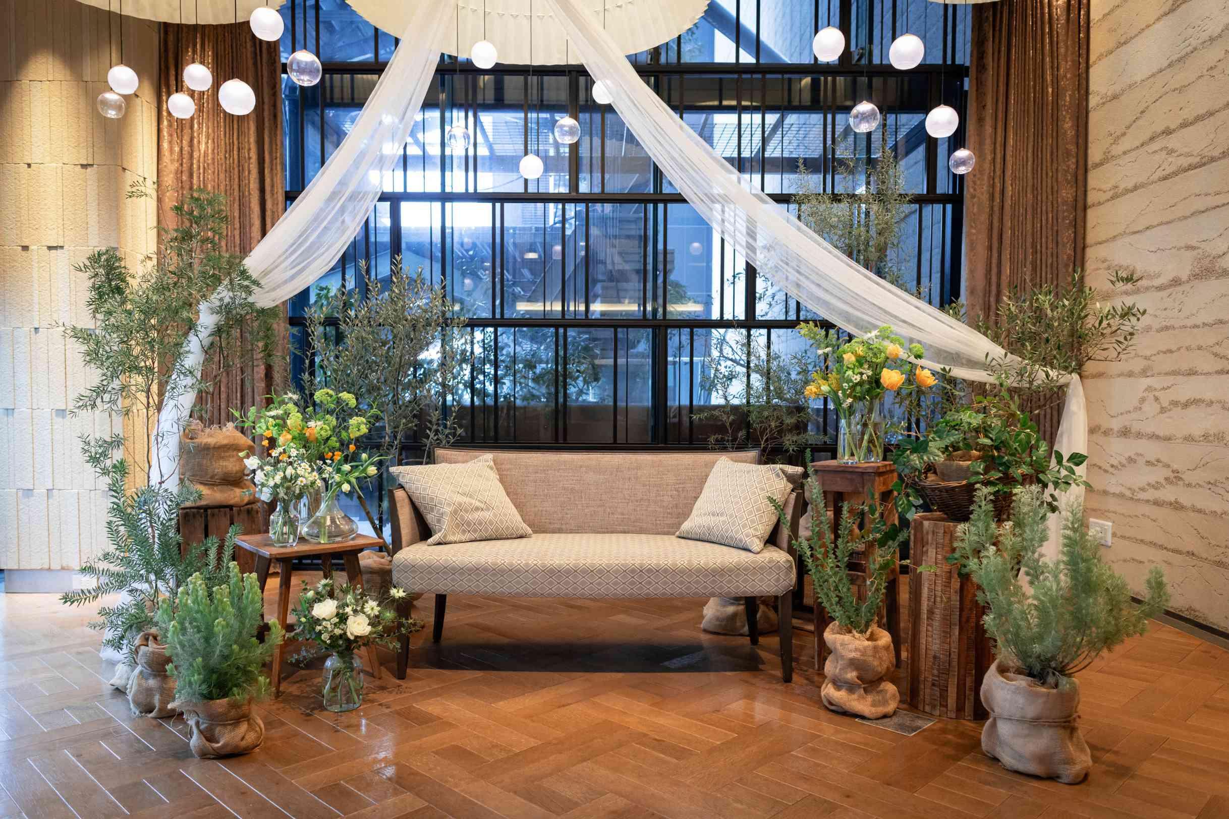 季節の植物やインテリアを扱う有名ショップ「garage」が同館の装飾を監修!garageがコーディネートを手掛ける会場はMEDIだけ。都会に佇む森の中で二人らしい空間を演出してみて。