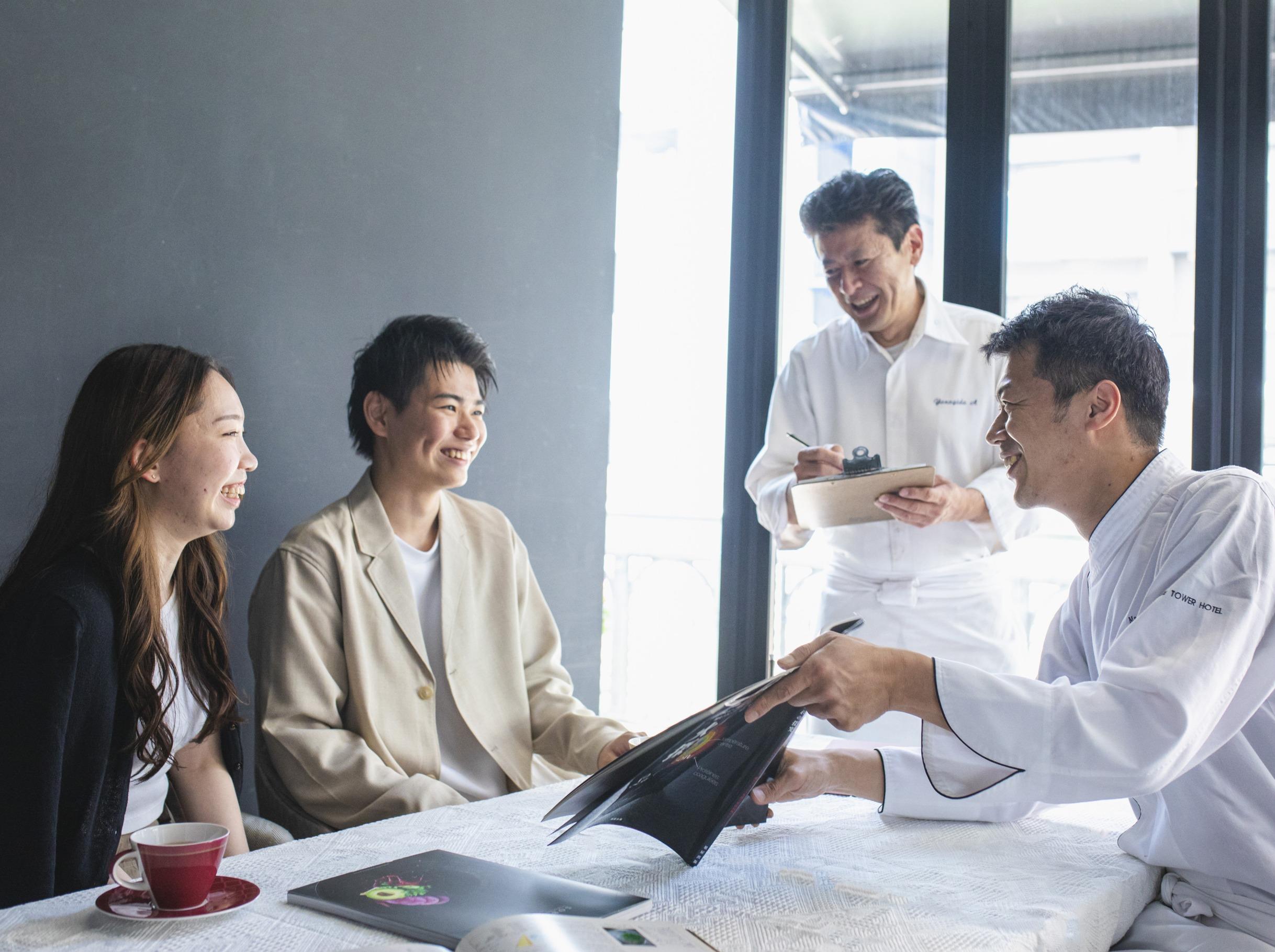 数々の口コミで上位受賞を取得するオー・ド・ヴィーグループの料理は、様々な世代のゲストから大好評。「決まったメニュー」はひとつもなく、お二人とシェフが相談しながらオリジナルフルコースを創り上げる。