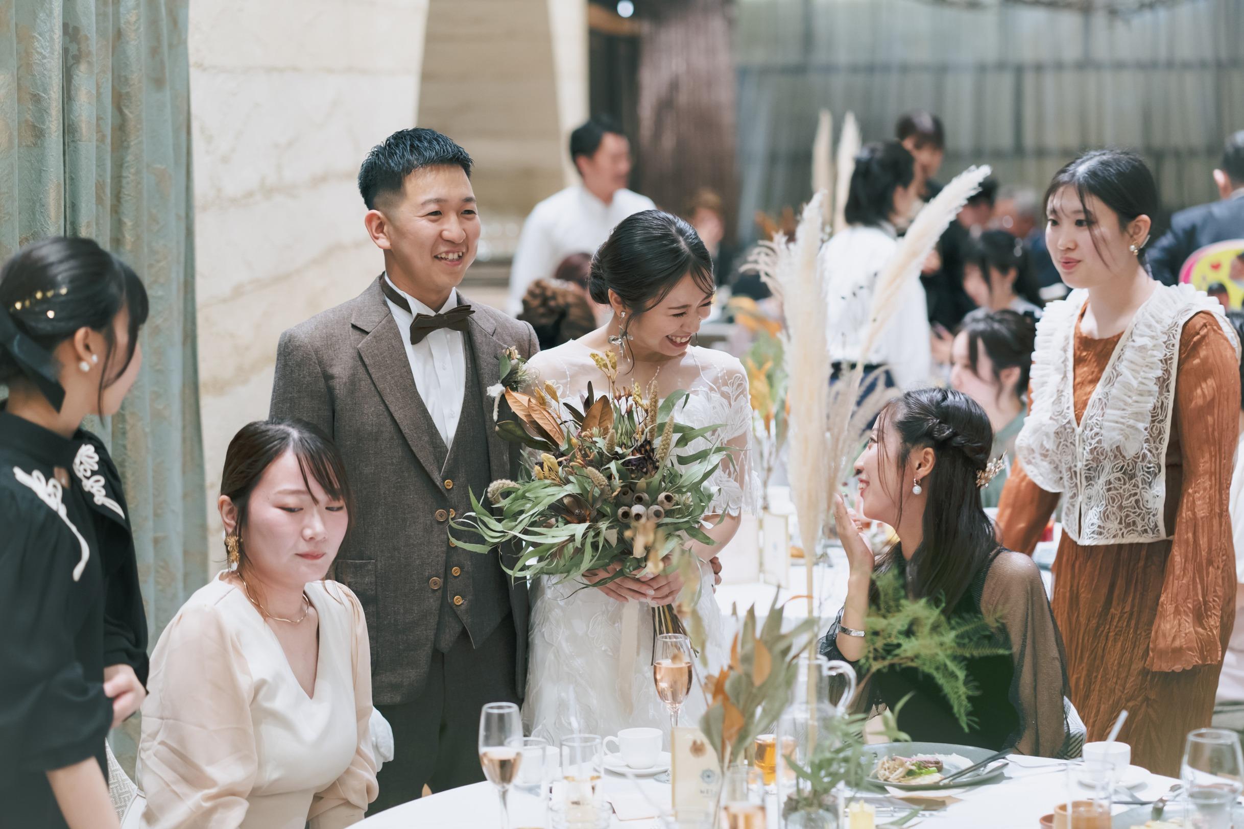 式を挙げるか迷う方からこだわり派まで。パーティでお二人を知り心が温まった後誓う“宴後式”。一般的な順序ではなく美食を楽しみ心が通じた結びの誓いを。人柄が伝わった後の感謝は真っ直ぐ届き深い絆を結びます。