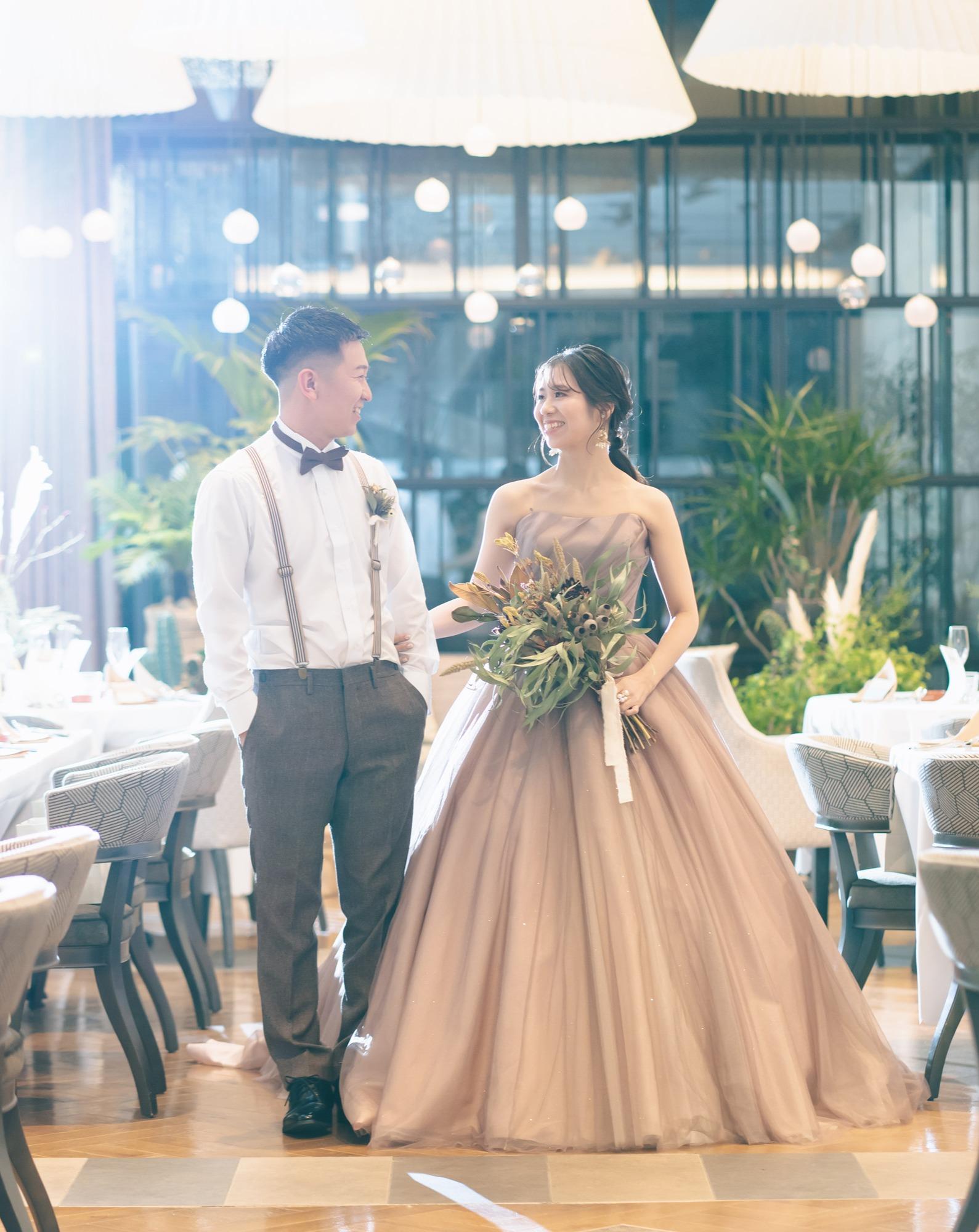 空間デザイン賞を受賞したレストランと人気ボタニカルショップ“garage”が創るコーディネート力と美食に特化したフォトジェニック会場。緑溢れるコーディネートや植物・ドライフラワーなどお二人らしさ満載!