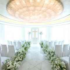 地上27階に位置する天空のチャペル。大理石とシャンデリア、自然光がきらめくチャペルで、生演奏をご体感いただけます。