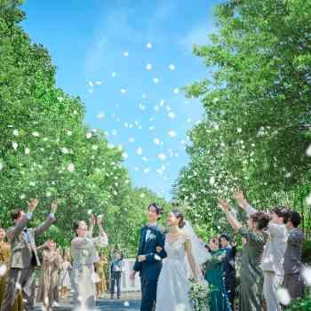 - エリア1の広大なガーデンを持つ大宮璃宮だからこそ本物の緑の中でのフラワーシャワーは非日常感を感じる