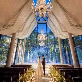 県内最大級の3000坪の緑溢れる広大な土地に佇むチャペル。自然光が差し込み開放的なチャペルでは滝も流れて自然を感じられる。フラワーシャワーは緑溢れるガーデンで大切な方と心温まるシーンを過ごして。