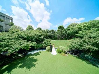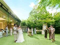 お外での緑溢れる中でのフラワーシャワーも叶えられる。ゲストと楽しんで!
