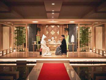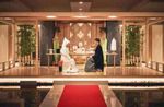 出雲大社の縁結びの神様「大国主大神」の分身様をお祀りしている神殿。参進の儀をできるのは館内神殿では県内唯一。 「縁」というコンセプトのもと、おふたりの間柄だけでなく、全ての人々が ご縁を結び、幸せになることを大切にしている。