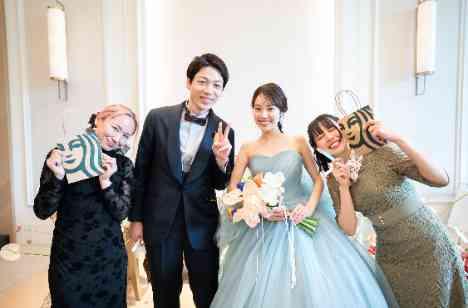 再入場後はドレスの色当てクイズをされたおふたり。おふたりがお持ち込みでご用意されたペンライト。ゲストの方はご新婦様がお召しになられるとおもう色味のペンライトをお選びいただきます。ご新婦様の再入場後のドレスはなんと水色!水色をお選びいただいたゲストの中から更にサプライズで景品のお渡し。これにはゲストの方も大変お喜び頂きゲスト想いなおふたりならではのご演出です。