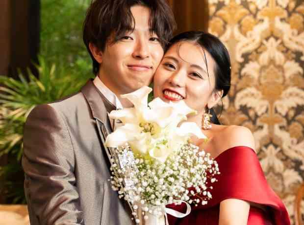 ブライダルフェアにお越しいただいたときから「お花にこだわってお洒落な空間を作りたい」と仰っていたおふたり。専属のフローリストとお打ち合わせを重ね、和モダンなオリエンタルテラスの空間にぴったりのコーディネートを作り上げました。ゲストが気兼ねなくメインテーブルに来れるようにと、ソファにしたことでゲストとの距離も近いパーティーを作り上げました