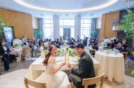 高さ7メートルの窓一面に広がるのは、涼やかな滝の調べと眩い緑が織りなす「森のチャペル」。自然の光に包まれた大理石のバージンロードを歩む瞬間、お二人の幸せは最高潮に達します。都会の喧騒を忘れさせる開放的な空間で、ゲストの記憶に深く刻まれる感動のセレモニーを。大宮璃宮だからこそ叶う、四季折々の美しさを背景にした唯一無二のウェディング。この場所で、一生に一度の煌めく誓いを。