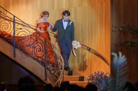 挙式後は、憧れていた「森のチャペル」に隣接する披露宴会場へ。会場に足を踏み入れた瞬間、高い天井と大きな窓から差し込む自然光、そして豊かな緑に包まれ、まるで森の中にいるような開放感に感動。一番のこだわりは、らせん階段からの入場。ゲスト全員の笑顔に迎えられ、本当に幸せな瞬間に。お料理も美味しく、スタッフの方々の温かいおもてなしのおかげで、大切なゲストとのかけがえのない時間を過ごすことができました。