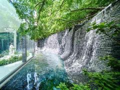エリアで唯一「動きのあるチャペル」扉が開くと滝が流れるチャペルにゲストも心を奪われる。チャペルの窓からは本物の緑が広がり、風の動く様子や鳥の鳴き声、水の音を感じられまるで自然の中に包まれたような空間で挙式が叶う。