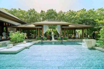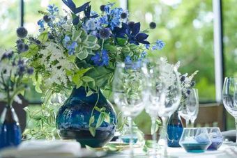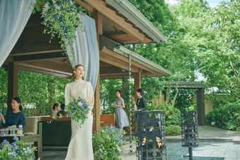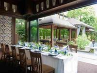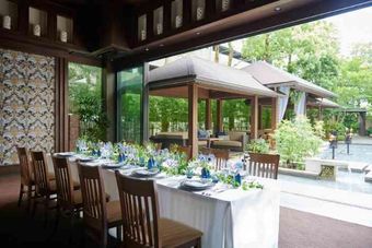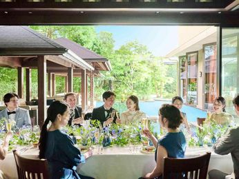 少人数専用会場だと会議室のような空間の式場が多い中で大宮璃宮では「風のせせらぎ」と「水の音」の自然を感じられる空間を親しい方とご利用いただける。緑を眺めながらのお食事はよりお料理を美味しく感じさせ、五感のおもてなしをゲストへお届けする