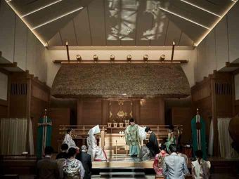 厳かな雰囲気の中に響き渡る雅楽の音色や太鼓の響きの中、大切な人への感謝を込めて歩む「参進の儀」。艶やかな花びらが舞う参道を進む花嫁行列は一幅の絵画のような美しさ。伊勢山皇大神宮だからこそ、お二人の生涯で忘れられない記憶を紡ぎます。