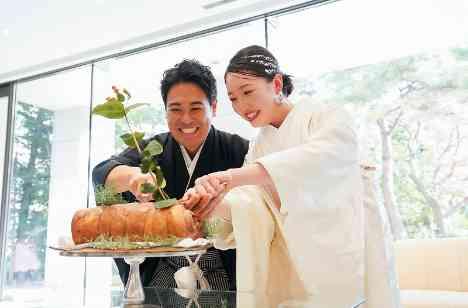披露宴後半のおすすめは、ガーデンテラスを使ったケーキカットやデザートビュッフェ。和の演出も大人気の演出です。緑と光に囲まれながら、開放的な笑顔が溢れる時間に。ゲストも自然と集まり、写真撮影や乾杯シーンがいっそう盛り上がります。神前式後とは思えないナチュラルな雰囲気で、世代を超えて楽しめるひとときです。
