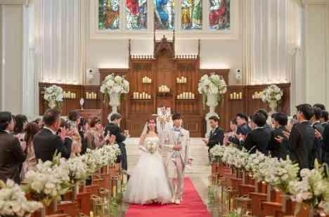 とにかく王道で正統派の結婚式を希望されていたおふたり。 ゴシック建築を使用し、ヴァージンロードは20M、本物のステンドグラスがはめこまれた関東最大級のチャペルに一目惚れ。 祭壇に上がったご新婦様のトレーンは美しく広がり、ゲストからは思わず「綺麗」との声が。 親御様への感謝のお気持ちも伝えられ、とても記憶に残る挙式となりました。