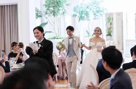 ご結婚式は、生まれてから今までに出会ってきた、かけがえのない方々が一堂に会する特別な場所。ゲスト皆様との想い出を振り返り直接感謝を伝えられるのも嬉しいポイントの1つ。ご披露宴の入場は、自然光がたっぷりと降りそそぐリビングルームから。扉入場とはひと味違う登場シーンに会場は大盛り上がり!入場から会場に一体感が生まれとても和やかなパーティーになりました。