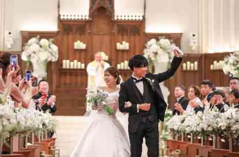 おふたりが選んだのはキリスト式。ご新郎様はおひとりでご入場されご新婦様はお父様とご入場。たくさんのゲストに見守られながら永遠の愛を誓い合ったおふたり。そのあとはパイプオルガンや聖歌隊、トランペットの生演奏に包まれながら退場したのちは大階段でおふたりのお好きな音楽に合わせフラワーシャワーのイベント! あたたかな挙式の時間をお過ごしいただきました。