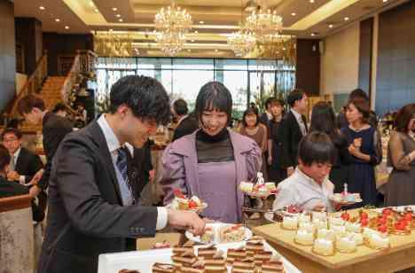 大切なゲストのかたには皆様が笑顔で自然体で寛いでいただけるようお肉料理の後はデザートブッフェのイベント!クリスマスということもあり苺を使ったデザートや高齢ゲストにも嬉しいお茶漬けとラーメンをご用意!ブッフェだからこそ新郎新婦様とお話をする時間もあり、ゲストの方も自由に好きなデザートを選ぶことができ大変大満足されておりました。