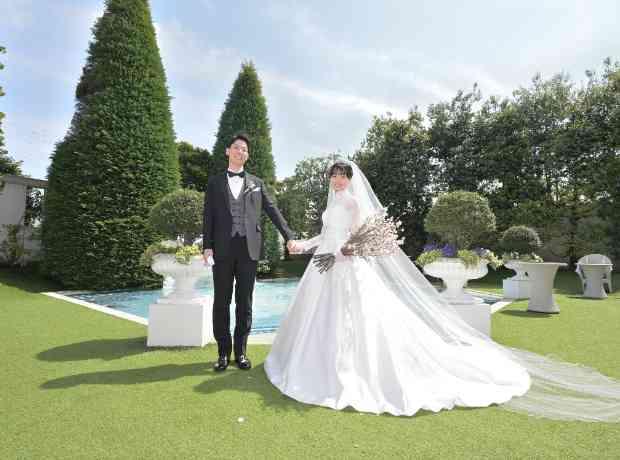 ゲストのアクセス面も考えて選んだのが、JR大宮駅西口から送迎バスで10分の場所にあるこの式場。お城のように迫力のある大聖堂の、スケール感やステンドグラスの美しさに惹かれた。「ガーデンのある披露宴会場も条件の一つでした。試食したお肉も美味しく、スタッフさんの対応も良かったため見学一軒目で即決でした」。