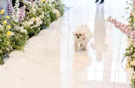 お二人が結婚式場探しをされる中で一番大事にされていたこと、それは愛犬と一緒に結婚式ができる会場!当館はチャペルだけでなく、ガーデンも愛犬と一緒に過ごせるので、想い出のシーンが沢山残せそう!と式場見学をいただく中で、こここそ運命の会場!と仰っていただきご成約をいただきました。愛犬と一緒に家族三人で誓うオリジナルウエディングを叶えました。