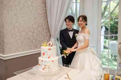 挙式後は会場併設のガーデンでゲストとのフォトタイムからスタート。祝福の言葉に溢れ、幸せいっぱいの時間でした。愛犬と一緒のウエディングにこだわりったお二人らしく、披露宴でも愛犬をメインにしたいウエディングケーキにはなんと愛犬のアイシングクッキーをご用意!ゲストからも「かわいい!」の声を沢山いただきました