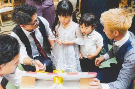 お子様に大好評だった縁日ビュッフェ。おふたりが心を込めて手作りしたゲームコーナーや、縁日をイメージしたフランクフルト、冷やしきゅうりなどのフードがずらりと並び、会場は笑顔と歓声でいっぱいに。遊んで、食べて、また笑って――世代を問わず楽しめる空間に、ゲスト同士の会話も自然と弾む、あたたかく賑やかなひとときとなりました。