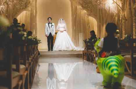 恐竜の着ぐるみを身にまとった最愛の息子さんが、リングボーイとして登場。 その可愛らしい姿に、会場からは思わず「かわいい!」という歓声が上がり、同時に「がんばれ~」と温かな応援の声も響き渡りました。 少し緊張しながらも、一歩ずつ大切なリングを運び、おふたりのもとへしっかりと届けてくれた瞬間。 ゲスト全員が笑顔に包まれ、家族の愛と温もりを感じる、心に残るワンシーンとなりました。