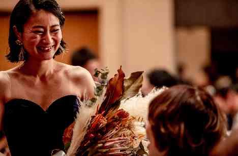 メインテーブルはお子様と新郎新婦の4名がゆったりと座れるように長いソファ席に ソファにすることで新婦様のドレスが足元まできれいにみえており写真撮影会は止まりませんでした そして滞りなく進んだご披露宴中盤、新郎新婦再入場ではなんと新婦様のロングヘアがバッサリカットされておりました! 驚きの声とともにとってもよく似合ったショートカットに歓声&拍手が起こるほどの感動がありました