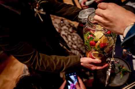 ウェルカムスペースにてゲストが各々受け取った“鍵” 披露宴会場に置かれた宝箱を一人一人開けていき見事宝箱が開いた方へはお二人よりサプライズプレゼントのご用意がございました そして再入場時にはテーブルを一卓ずつ回りながら果実を瓶に入れてもらい果実酒づくりを 全テーブル回ることでその日来てくれたゲストとゆっくりお話しもでき、何よりその日のゲストとお二人で創り上げる唯一無二の果実酒は特別な宝物に