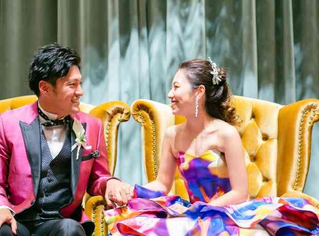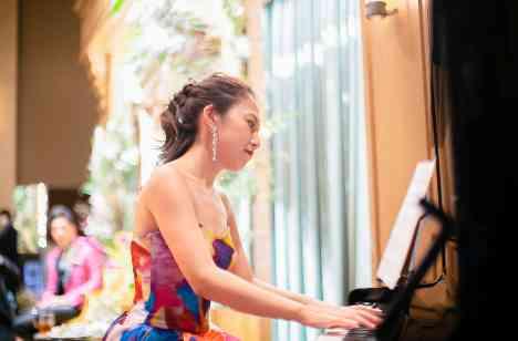 再入場で華やかな衣装にチェンジした新郎新婦 入場の際には華やかな衣装がぴったりなるみファンタジアを♡ グラスの中できれいに光るドリンクにゲストの皆様驚き&感動でした そしてピアノが大好きな新婦が新郎とゲストの皆様へピアノ演奏のプレゼント 感動に包まれる会場内にさらに新郎もピアノ演奏をするというサプライズが! 思わぬ新郎新婦の共演にまたまたゲストが驚かされる演出でした