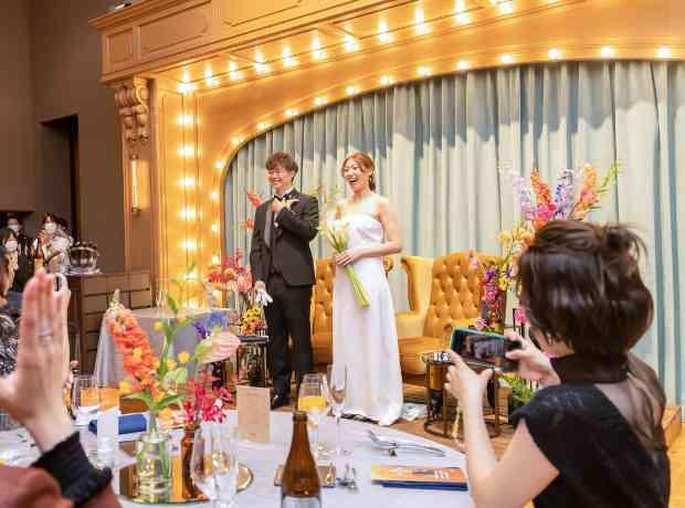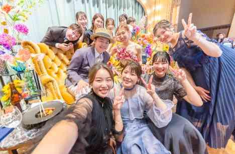 ゲスト思いのおふたり。やはり周りのご友人様も温かい方ばかり。ご歓談の時間は新郎新婦の周りにゲストの方が絶えませんでした。友人スピーチも代表で1名様ずついいただきましたがもっと皆様に参加してほしい!と後半にテーブルインタビューという形でランダムにマイクを向けておふたりとの思い出をお話いただきました。ご家族の方も知らない一面が見れ、よりみなさんに愛されているんだなと実感した一日となりました!