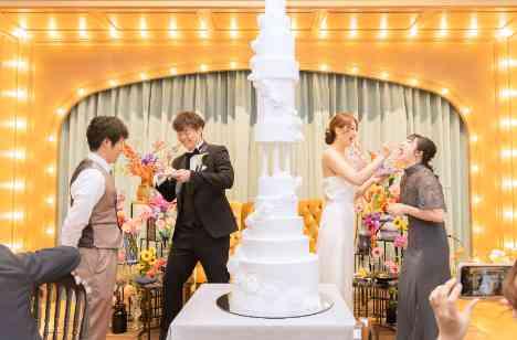 「芸能人の結婚式のような特大ケーキをしたい」夢を叶えることができました。見上げるような特大ケーキ!ゲストの方も驚きです。 おふたりでファーストバイトの演出の後、サプライズでご友人の方へ感謝の気持ちを込めてバイトをいたしました。NOVELでは各部門のスタッフとお打ち合わせを行うことができます。プランナーだけではなくNOVELスタッフみんなで結婚式を創っていきますのでどんな演出でもご相談が可能です。