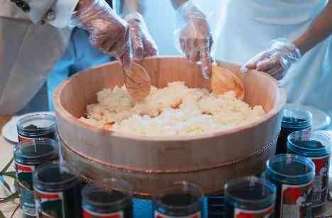 温かい雰囲気の中披露宴会場へ 乾杯挨拶後お料理がスタートしてインタビューのお時間を過ごされ挙式で炊いた炊き立てのお米でフォースとバイト! 新郎様の出身地でもある大野海苔を巻いておにぎりファーストバイト!そのあと両家のお母様へ感謝の気持ちを込めてサンクスバイト。感謝も伝えられゲストの印象に残る演出です。