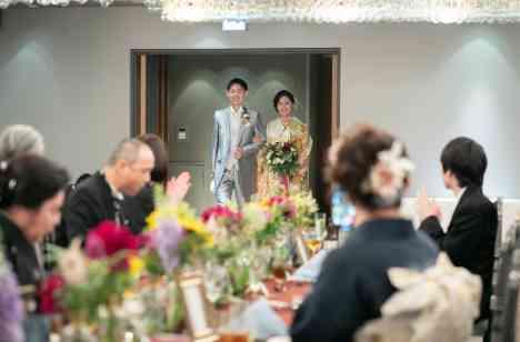 11名様のご会食でアットホームな雰囲気!妹様の好きな音楽なども使用、おいしい食事と共にご両家様とも想い出とこれからのお話しで盛り上がって頂いておりました。ご中座のエスコートはお父様と。再入場の際には成人式で使用されたお振袖衣装チェンジ。Tボーンのカット演出も堪能して頂きました。