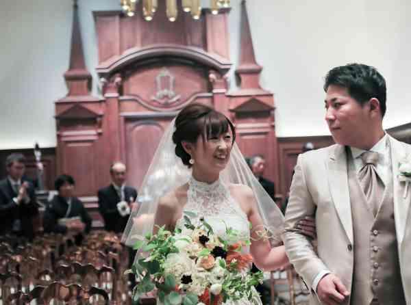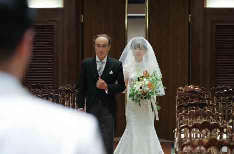 綺麗なラインのマーメイドでご入場。おふたりの節目としてのご結婚式を希望されていたおふたりでしたので、しっかりとご家族様の前で誓いを立てて頂きました。ブーケはおふたりオリジナルのもの。お打ち合わせの中でご希望や好みを伺い当日にお渡しさせていただきました。