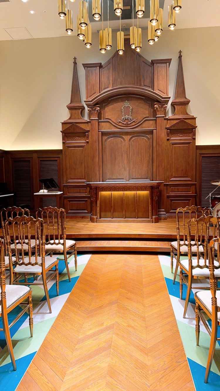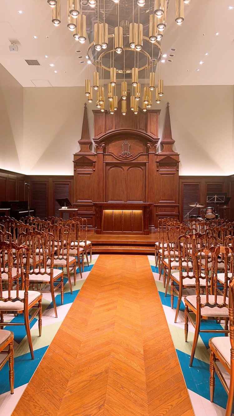 挙式会場の雰囲気についてはダークブラウンを基調とし、すごくドレス映えするように工夫されていると思いました。トータル的に素晴らしい挙式会場だと思います。