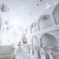 純白の大聖堂で感動挙式体験!輝きの白を基調にしたチャペルは、天井高10mの開放感あふれる空間。純白なチャペルだからこそウエディングドレスが際立ち、花嫁を最大限に美しく魅せます♪