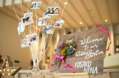 グストが待っている間も飽きさせないようにウェルカムボードや飾りつけをこだわって作りました。ゲストルームには写真をいっぱい飾り、自分たちのテーマに合わせたウェルカムエリアでゲストの皆様には楽しんで待って頂きました。