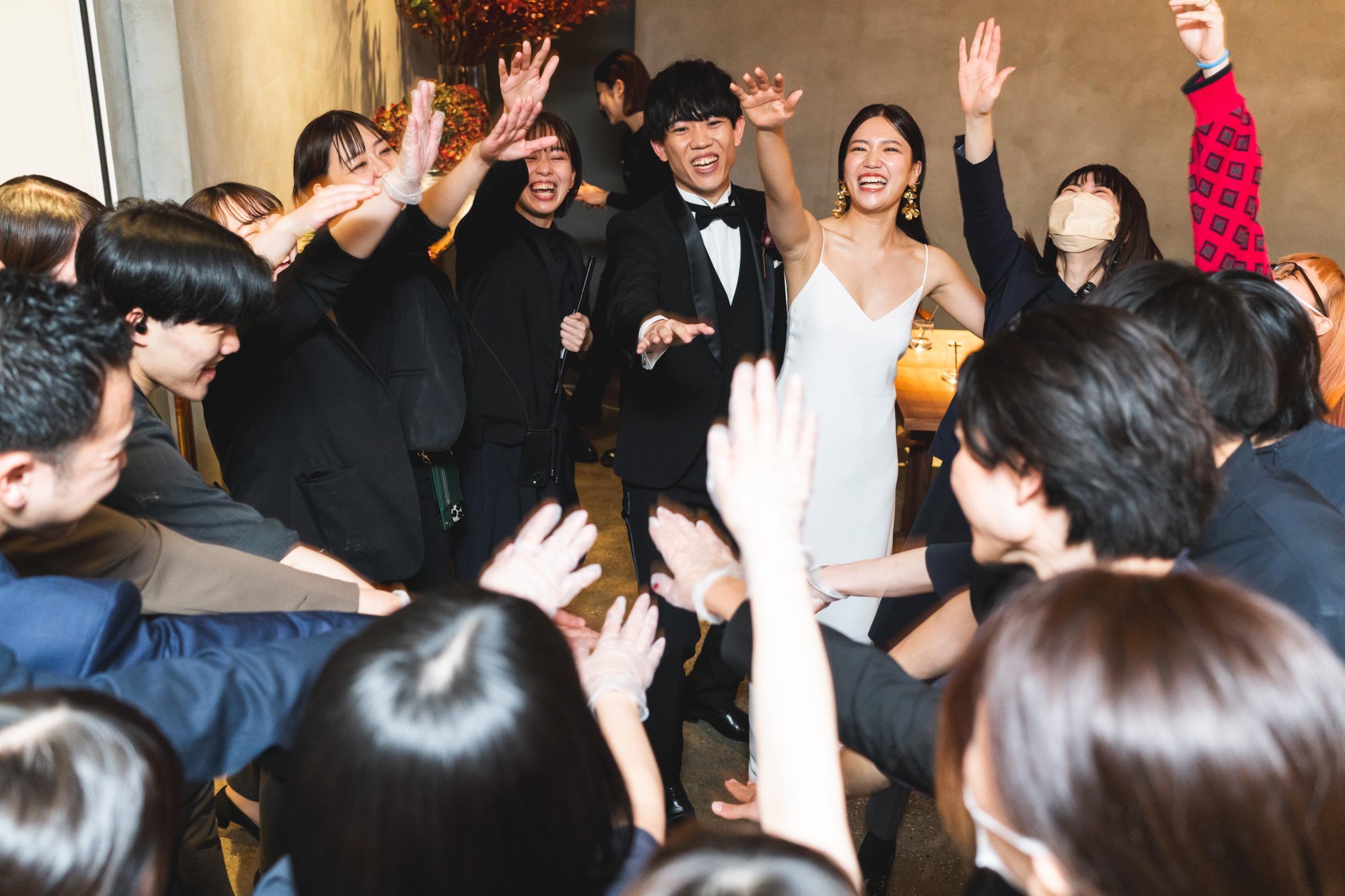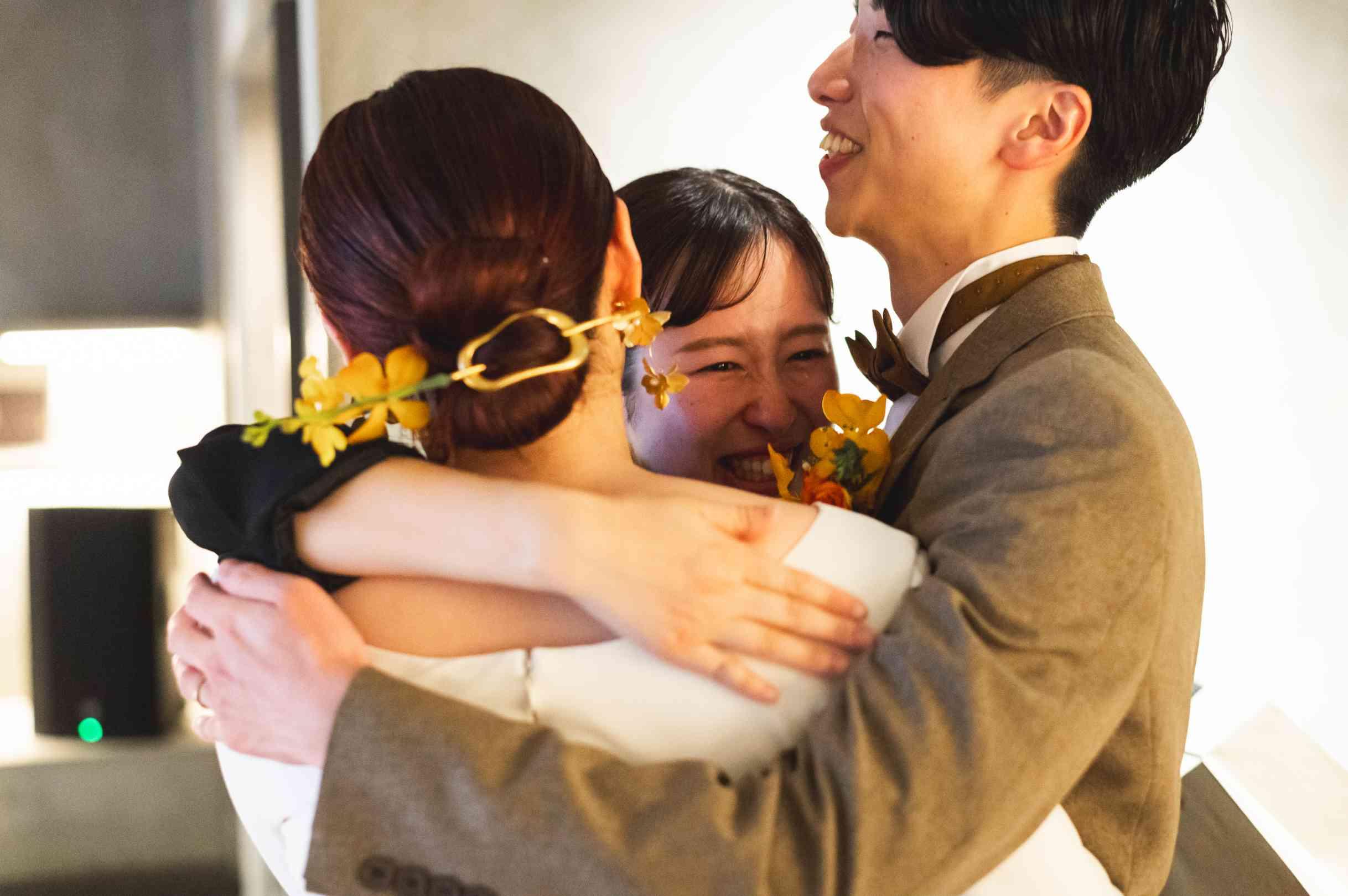 大切にしたのはゲスト全員がフラットにお祝いできる場所。不慣れなチャペルで神様に誓うよりも、IWAIは大切なゲストの前で相手に誓うスタイルを選びました。華美な装飾より、大切な人の声と想いが主役になる空間