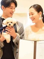挙式はもちろん披露宴・パーティも一緒に過ごすことができます。「ペット演出」では、人気の「リングDOG」や、一緒に誓いを立てる「肉球スタンプ」、ラジコンカーに乗って登場できる「ミニカー入場」等、お二人とワンちゃんのご希望にあわせて多彩にご提案。フェアにも一緒に参加で確認できる♪