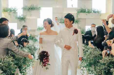ゲストに見守られ温かい挙式の時間を過ごしたおふたり。 ゲストからの「おめでとう!」というお祝の声に自然と緊張が解けておふたりからは笑顔が見えました。挙式後はご新婦様がご友人ゲストにあてた、ブーケプルズのサプライズ!女性ゲスト全員にダリアの花をプレゼントしました。ゲストからも喜びのお声が上がりました♪