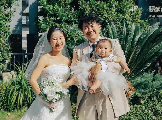 家族3人でファーストミートがしたい!と当館ガーデンにてファーストミートを行いました。 お互いの素敵なドレス姿はもちろん、お子様のかわいいドレス姿にお二人もうっとり。満面の笑顔に♪ まるで海外にいるかのような、緑あふれるガーデンにて家族3人の笑顔が詰まった素敵なお写真が残せました。 自然美溢れる空間で家族の新たな思い出が作れたお時間になりました。
