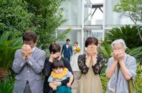 結婚式当日はファーストミート&ファミリーミートからスタート。 お気に入りの「ひまわりのブーケ」を持って現れた純白のご新婦様。 ご新郎様は涙され、ご家族の皆様は満面の笑みで迎えてくださいました。 横浜駅直結ながらも、緑豊かなベイガーデンはまさに都会のリゾート。 夏の結婚式にぴったりのスタートに。