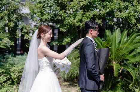 お支度を終えたおふたりが最初に対面するのは、ガーデンでのファーストミート。 ご新郎様からは、ご新婦様へサプライズでバラの花束とお手紙が贈られました。 優しい眼差しでご新婦様を見つめるご新郎様。 そしてそれを受け取ったご新婦様の瞳には、感動の涙が浮かびます。 ふたりきりの空間に、静かで温かな時間が流れました。