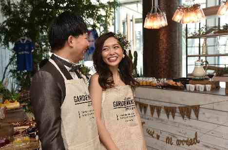 パーティの終盤では、エプロン姿のおふたりが登場!サプライズでご用意した「デザートブッフェ」にゲストからは大歓声が。 目の前でパティシエが腕を振るうパフォーマンスはもちろん、エプロン姿のおふたりとのフォトタイムにゲストの笑顔溢れるひとときとなりました。