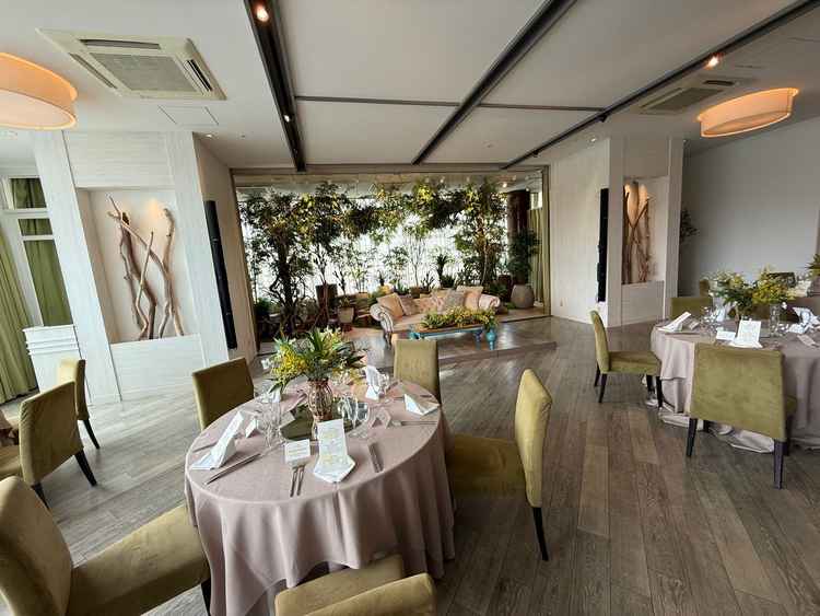 披露宴会場は景色もよく綺麗で、挙式をするか悩んでいたが、本会場を見て、挙式をする方向に考えが変わった。