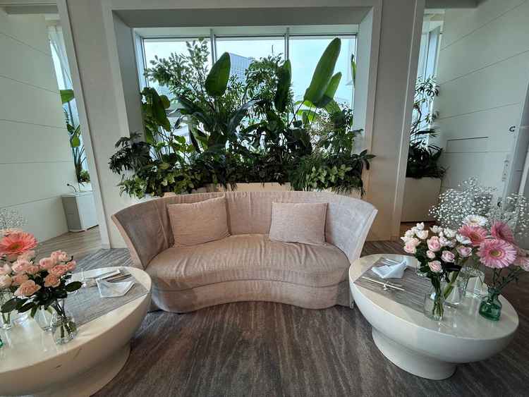 披露宴会場の前の空間でコールドアイスなど楽しめて、様々な使い方ができそうだと感じた。式場専用エレベーターも魅力的だった。